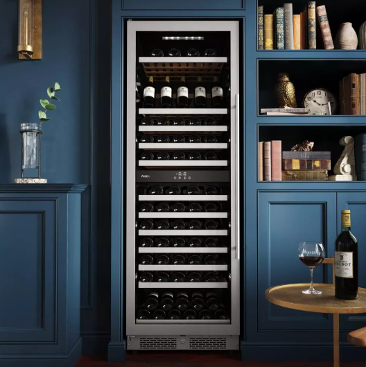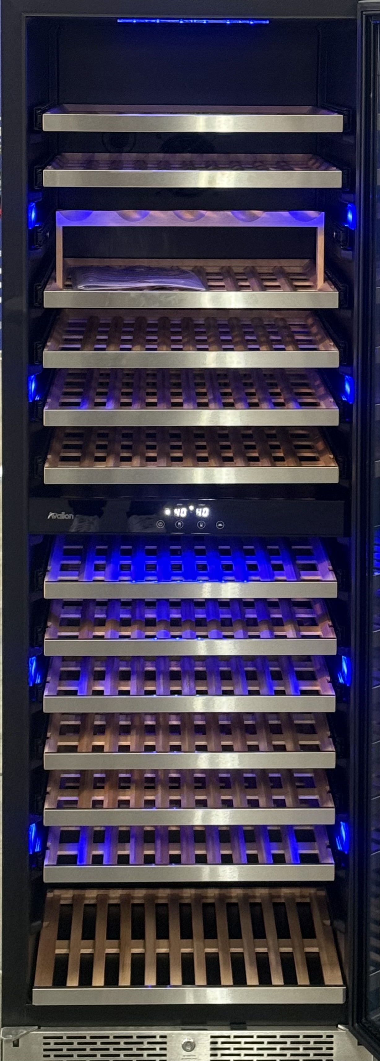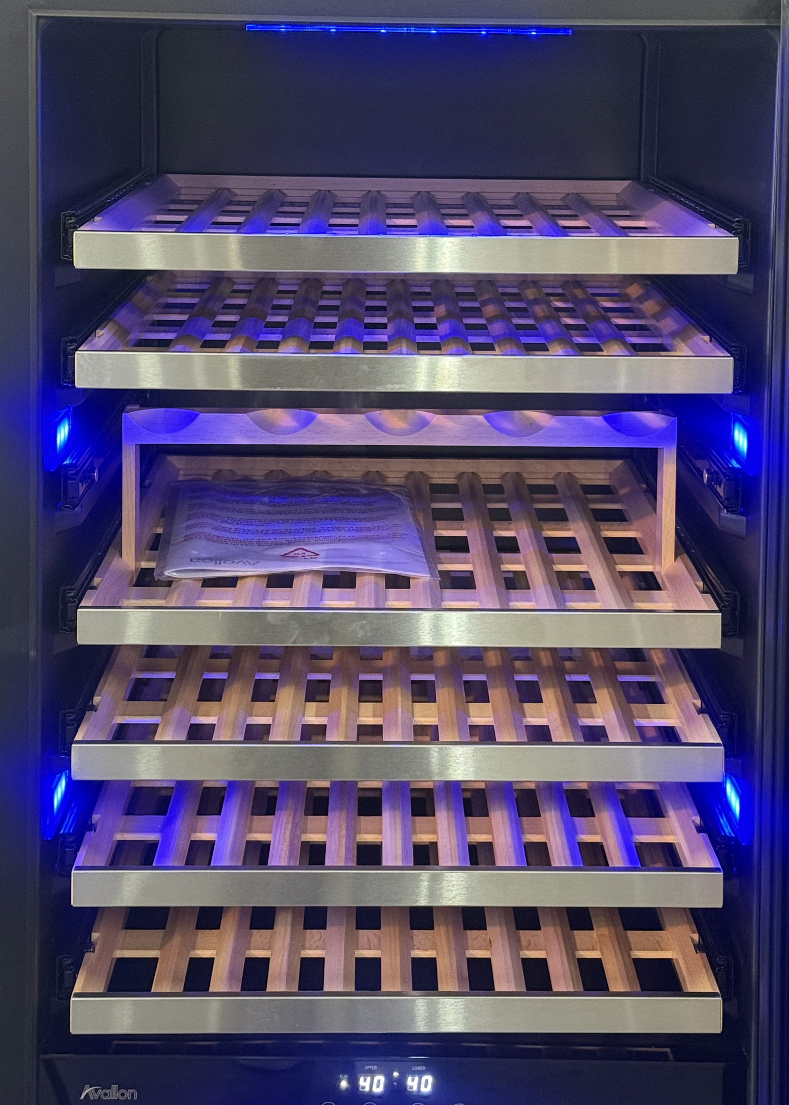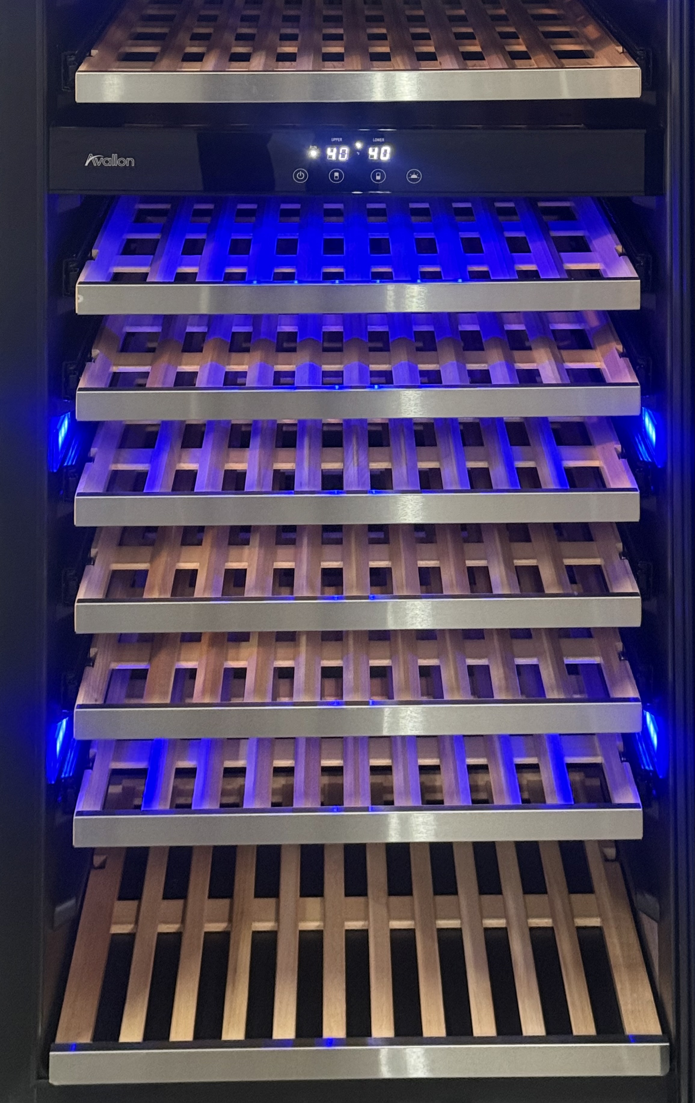 AVALLON 24" 140 Bottle Capacity Built In Or Free Standing Wine Cooler With Wood Shelves Dual Zone Cooling Door Alarm Door Lock And Energy Star Rated AWC243TDZRHACCY