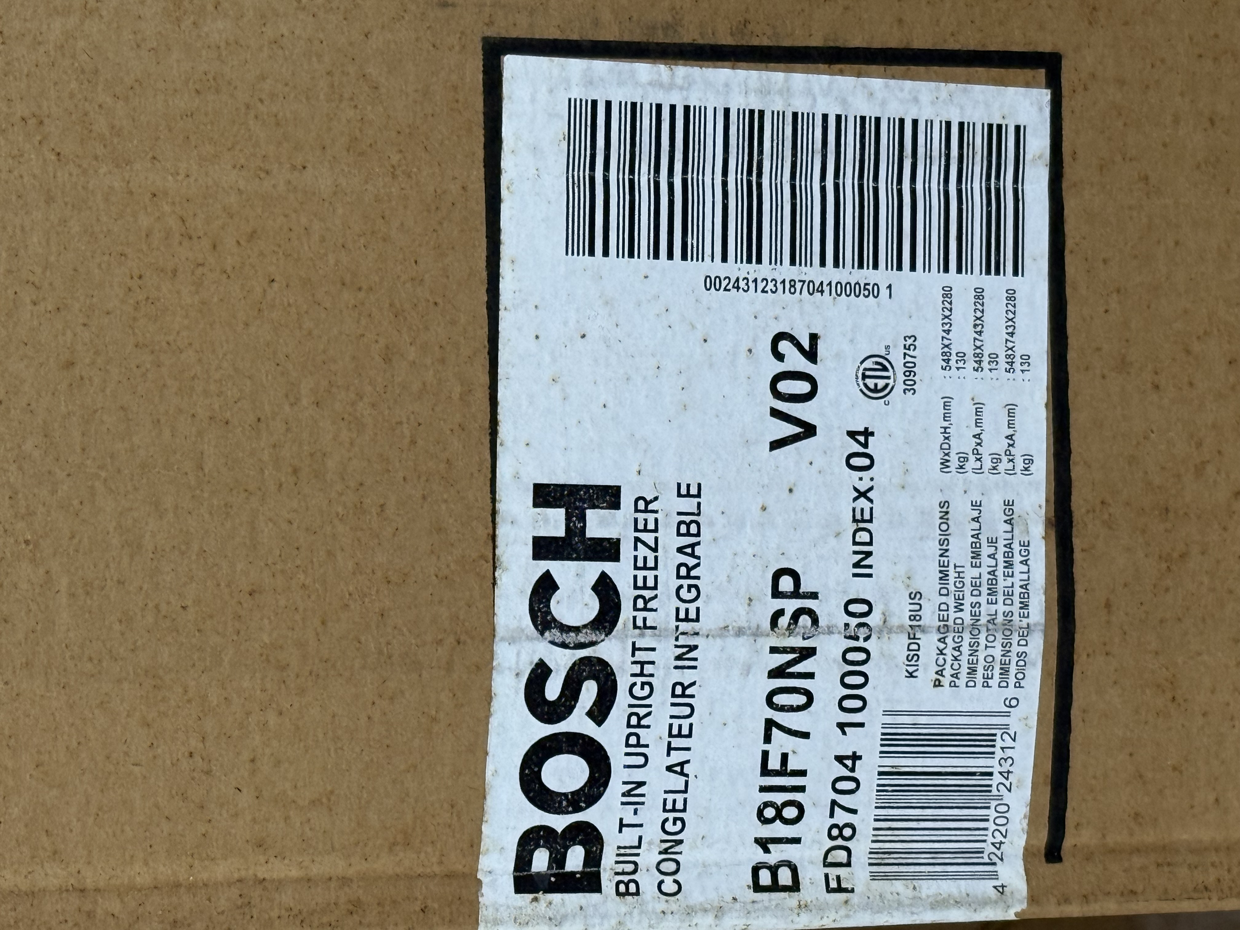 BOSCH 18" Built In Fully Flush Freezer Column 8.5 Cu. Ft. Capacity Internal Filtered Ice Maker And Electronic Controls B18IF70NSP