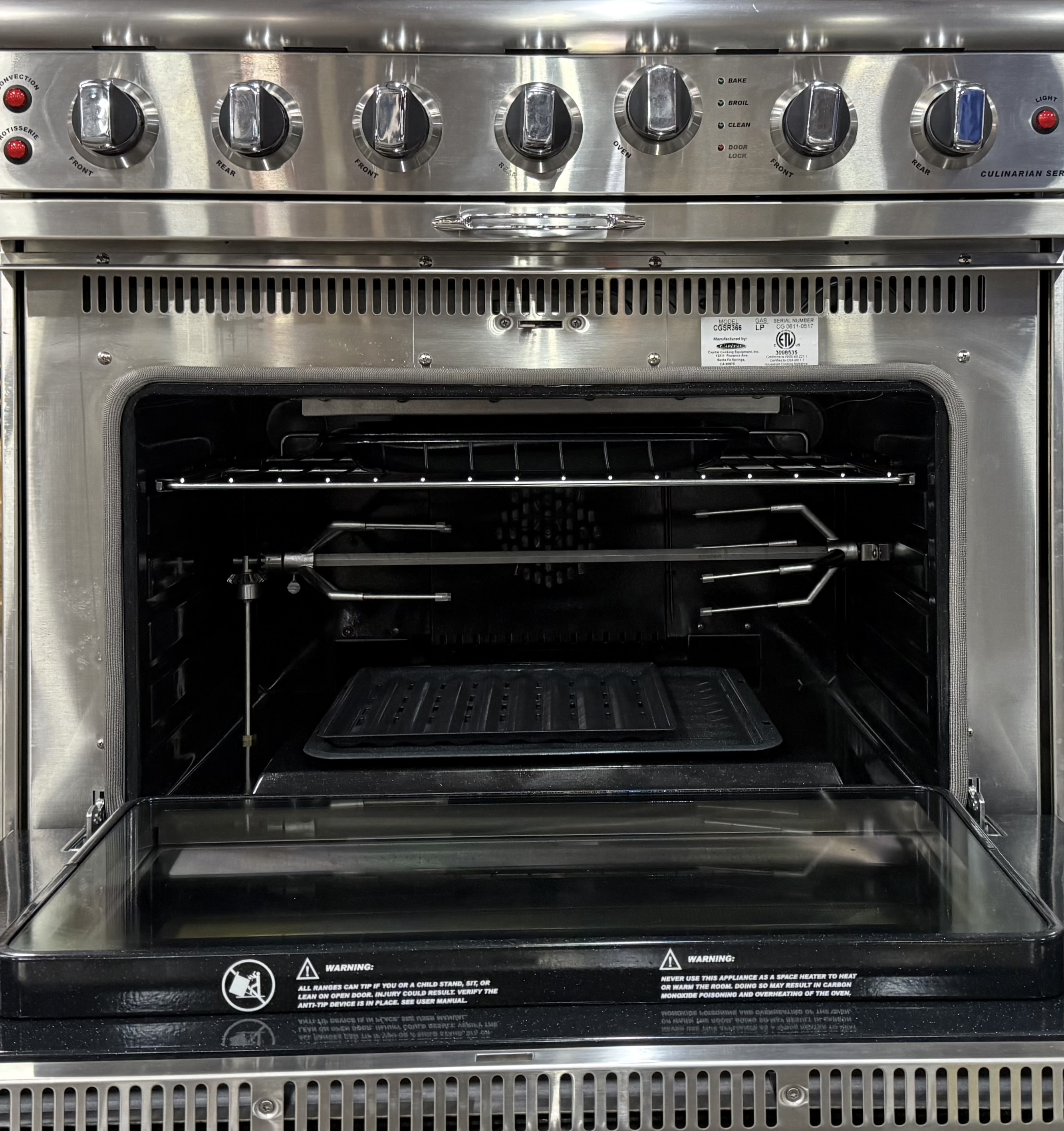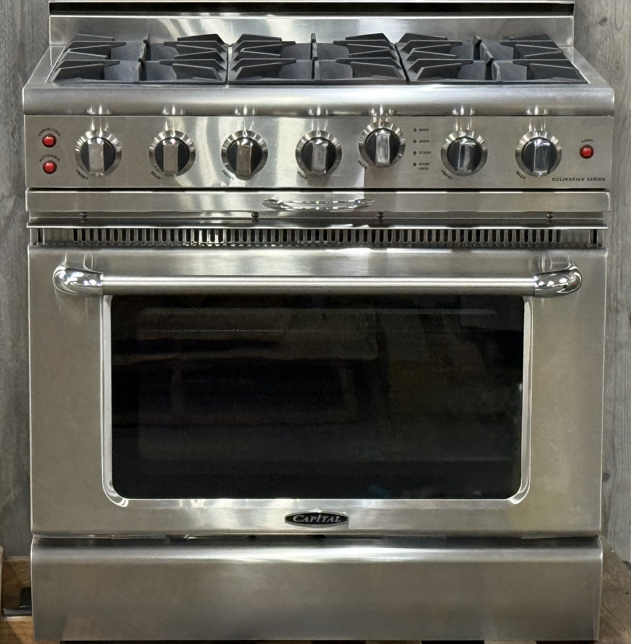 Like the 30″ Self-Clean Range, Capital’s 36-In. CGSR366-L Culinarian Series 36-In. Self-Clean Liquid Propane Oven Range with 6 Burners is a powerful range with number of features that ensure its perfection in any kitchen. Six burners provide a range of temperatures from a True Simmer of 145(degree) to the massive output of 25,000 BTUs. This range can fulfill nearly any cooking project you can throw at it.