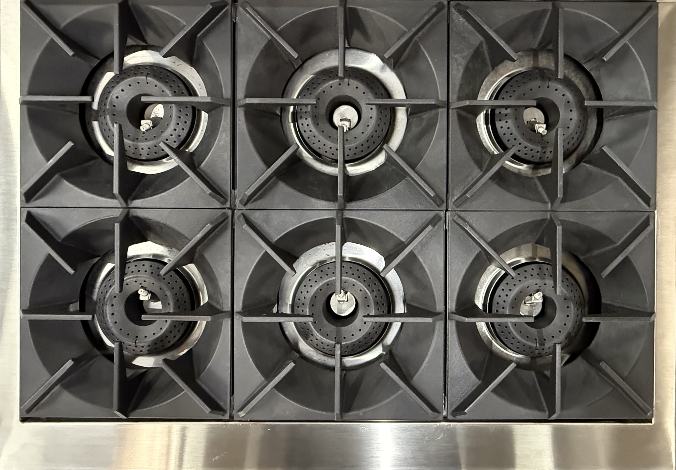 Grates: Continuous Cast Iron Grates (Dishwasher Safe)