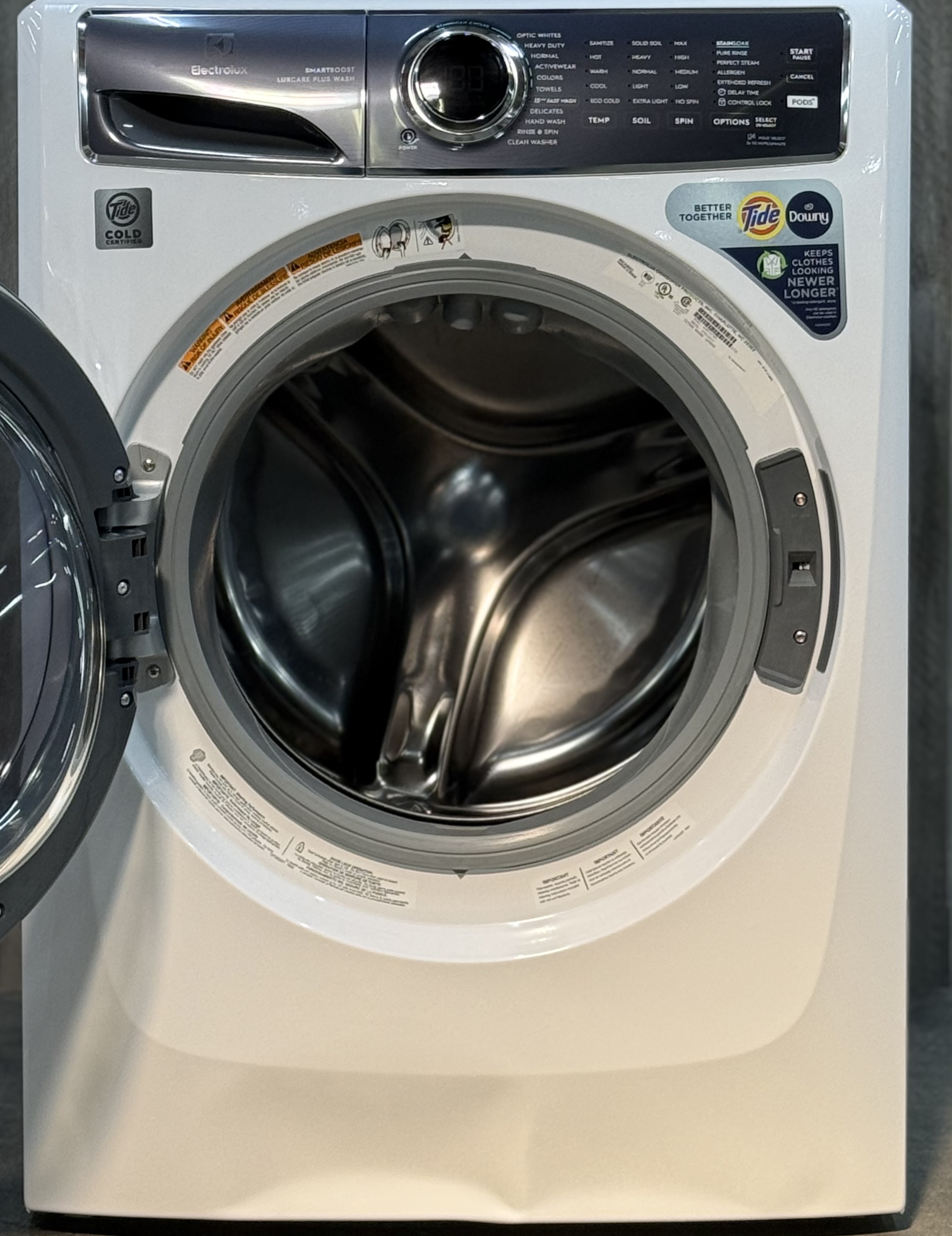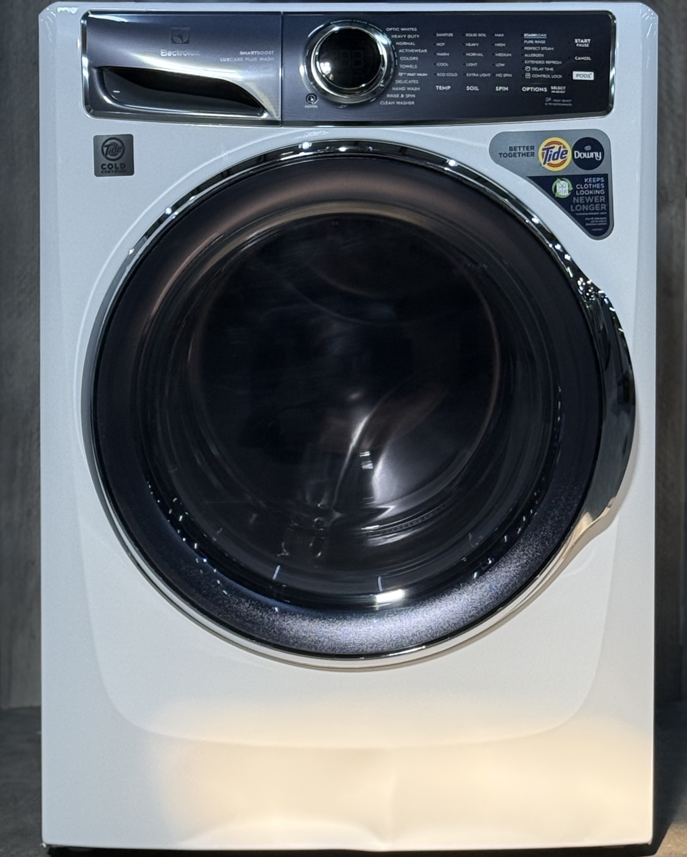 The Electrolux front load washer provides the most effective stain removal with SmartBoost(R) premixing technology. Features like Optic Whites(TM) and Perfect Steam(TM) provide better care for fabrics, giving your favorite clothes a longer life.