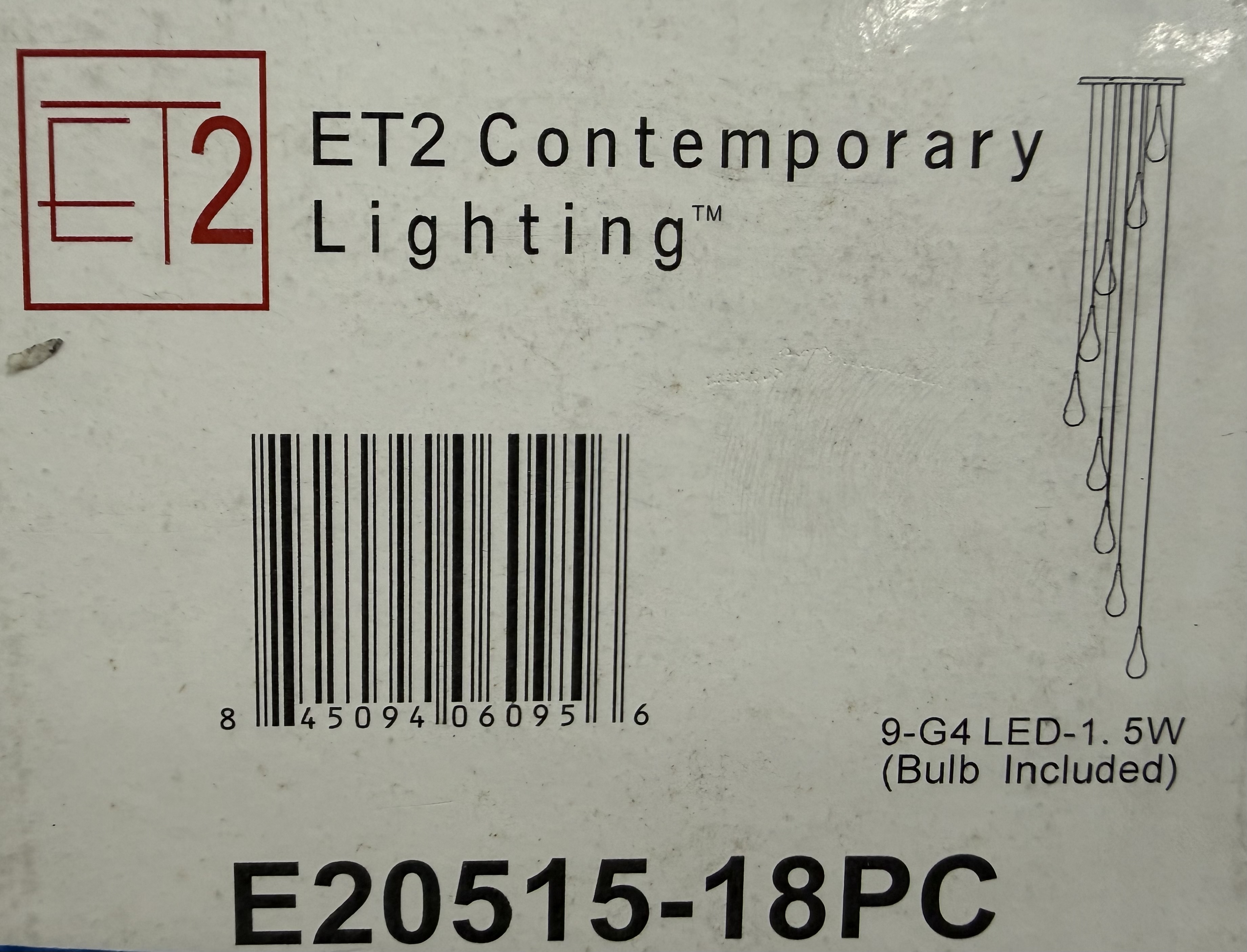 Lights: 9 integrated G4 LED bulbs included (total ~13.5 W).