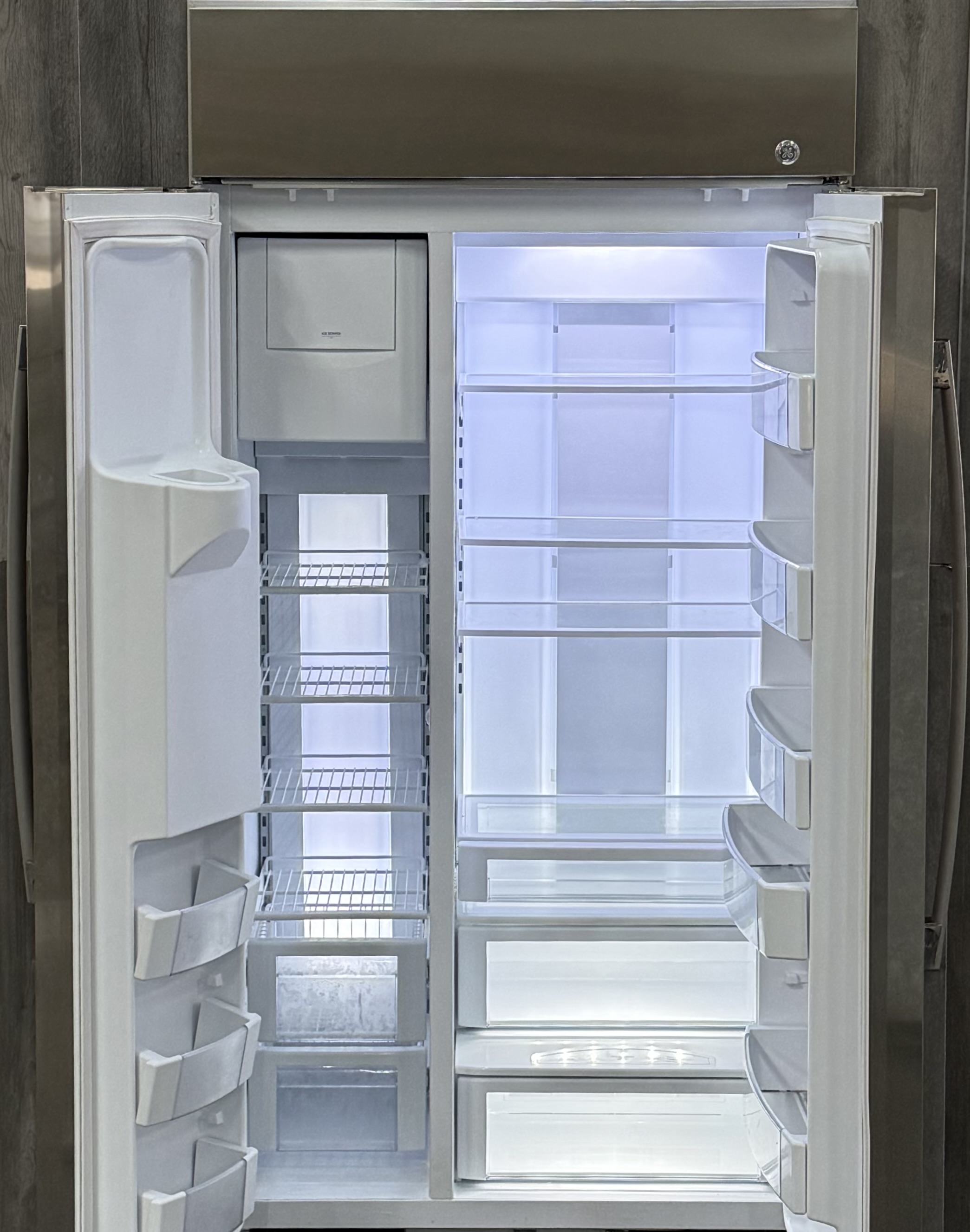 42″ Built-In ConfigurationEnjoy the streamlined appearance of a built-in refrigerator, designed to fit inside cabinetryIntegrated Dispenser with LED LightingHave access to ice and water, and to refrigerator controls like temperature settings, with a dispenser that’s integrated into your refrigerator doorLED LightingFind any item in your refrigerator with ease, thanks to bright, efficient lighting that illuminates the fresh-food and freezer compartmentsClimate Controlled DrawerAlter your drawer’s internal temperature to suit the food inside, using one of three temperature settings: Meat, Produce or CitrusBuilt-in WiFiMonitor and control your refrigerator from your smartphone, and receive helpful alerts if the door is left open or service is neededFresh Food Multi-Level DrawersProvide the ideal environment for storing your fruits and vegetablesAdjustable spillproof glass shelvesRaised edges help contain spills to make clean up quick and easyLarge door binsOffers ideal space for storing large containers in the door, freeing up valuable shelf spaceAdjustable Freezer ShelvesMake room for a variety of frozen foods, using four wire shelves that are designed for easy adjustabilityBuilt-In Ice MakerEnjoy clean, filtered ice anytime by scooping it from the freezer or using the integrated dispenser in the refrigerator doorFull-Extension Freezer BasketsEasily load and unload frozen items with freezer baskets that are engineered to slide all the way outAdvanced Temperature Management SystemKeep foods perfectly fresh with a multi-level air tower that distributes air evenly throughout the refrigerator and an overhead evaporator system that regulates humidityAdvanced water filtration uses MWF replacement filterThe included refrigerator water filter reduces 50+ impurities including lead, chlorine, microplastics, and PFOA/PFOS; providing clean, safe drinking water and ice (replacement water filters sold separately – check refrigerator filter compartment for compatible model)Overhead Cabinet AccessGain easy access to the water filter and other service components located in the overhead evaporator cabinet that’s designed with a convenient, flip-up panelEnhanced Shabbos ModeThe Shabbos Keeper connects to your refrigerator to automatically enable Shabbos compatible modes each week and before every holiday (Shabbos Keeper sold separately, visit www.zmantechnologies.com for details)
