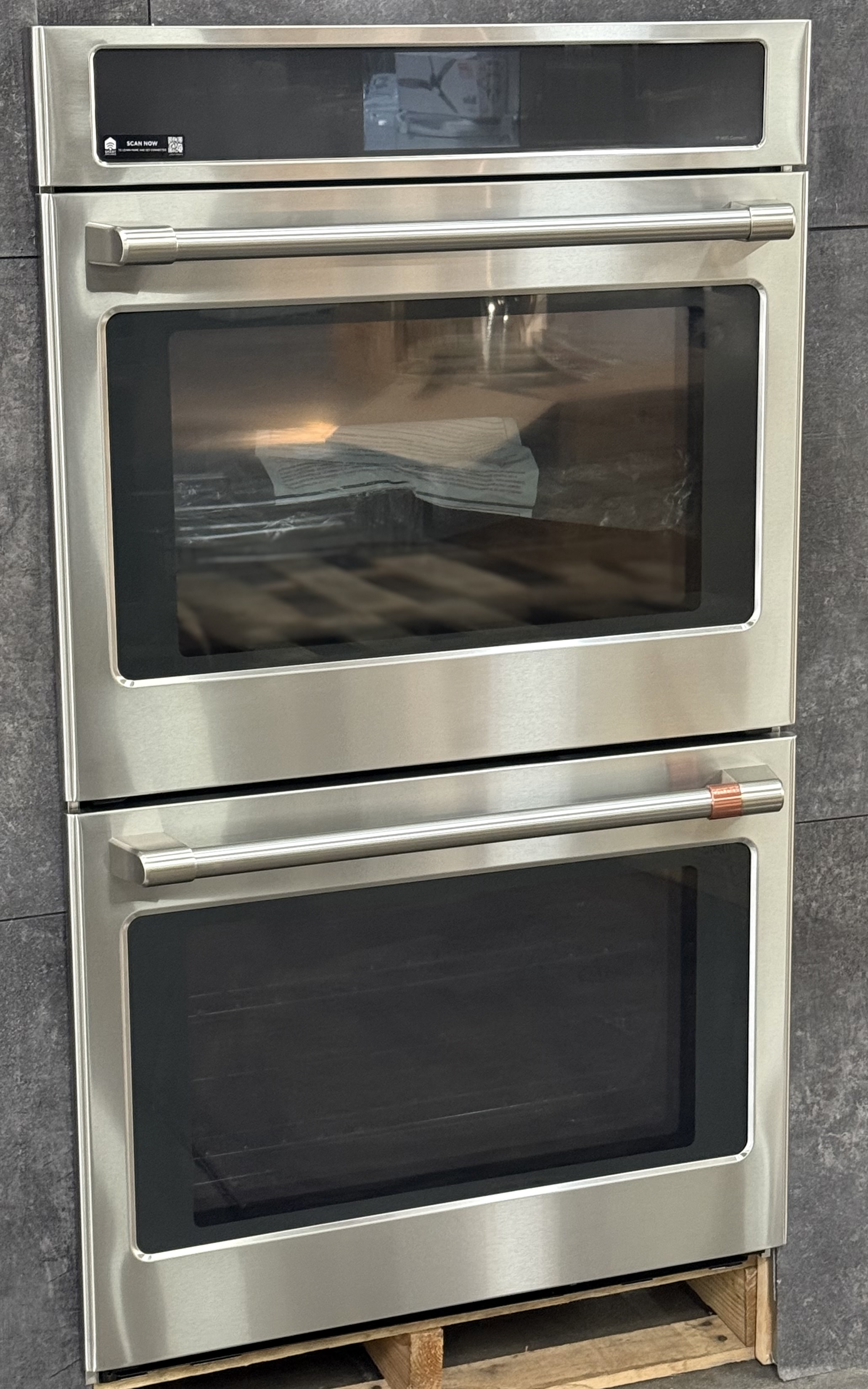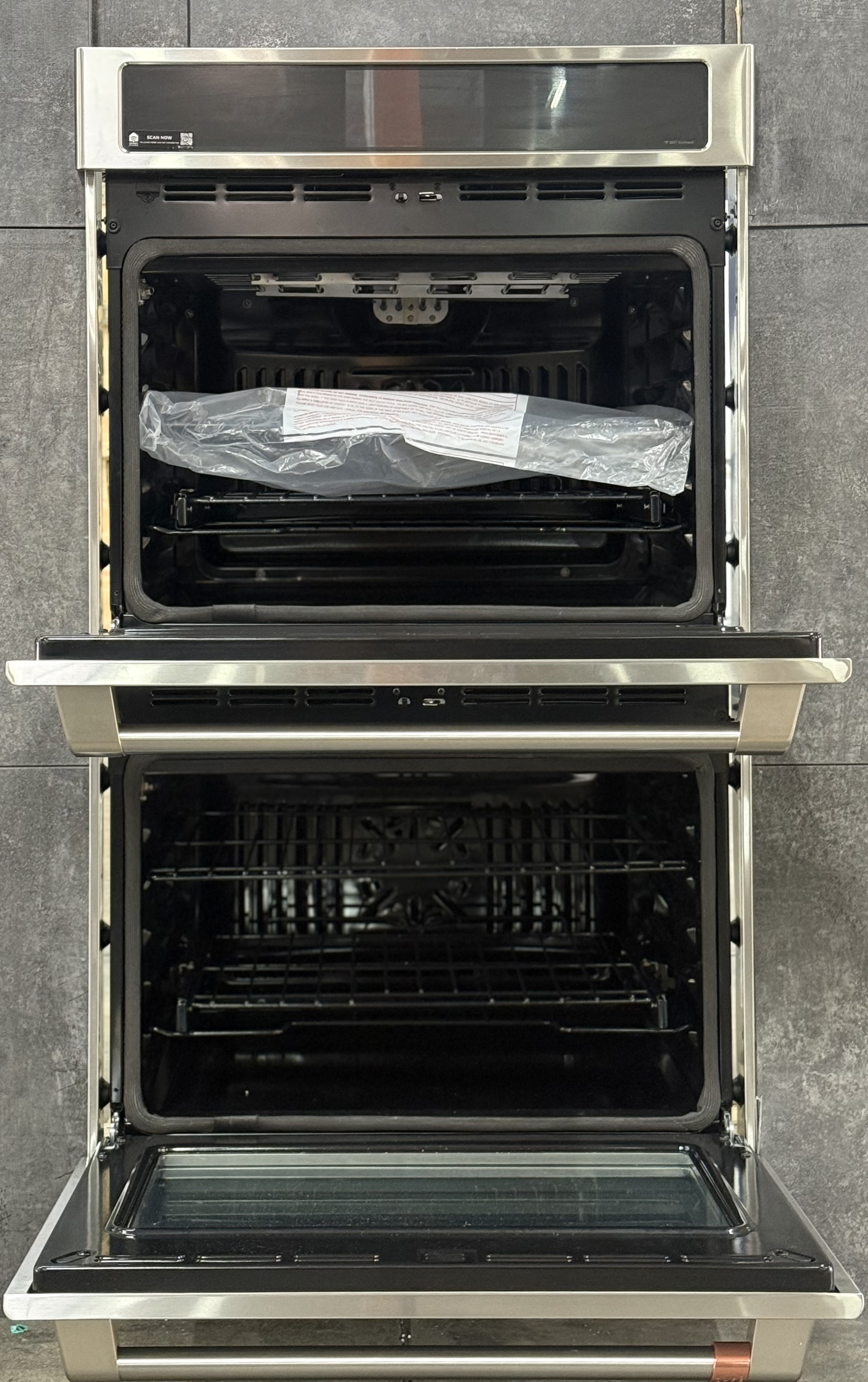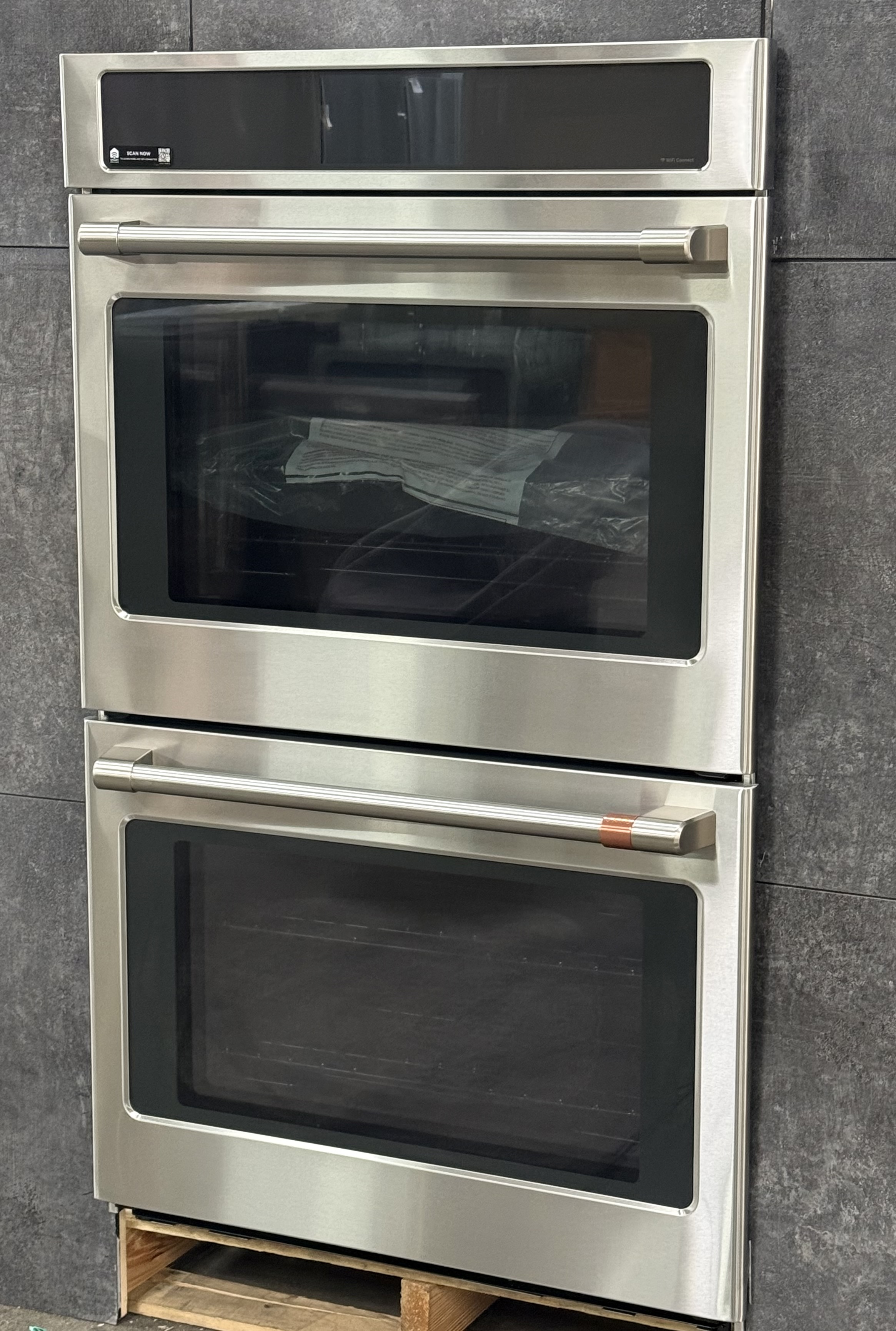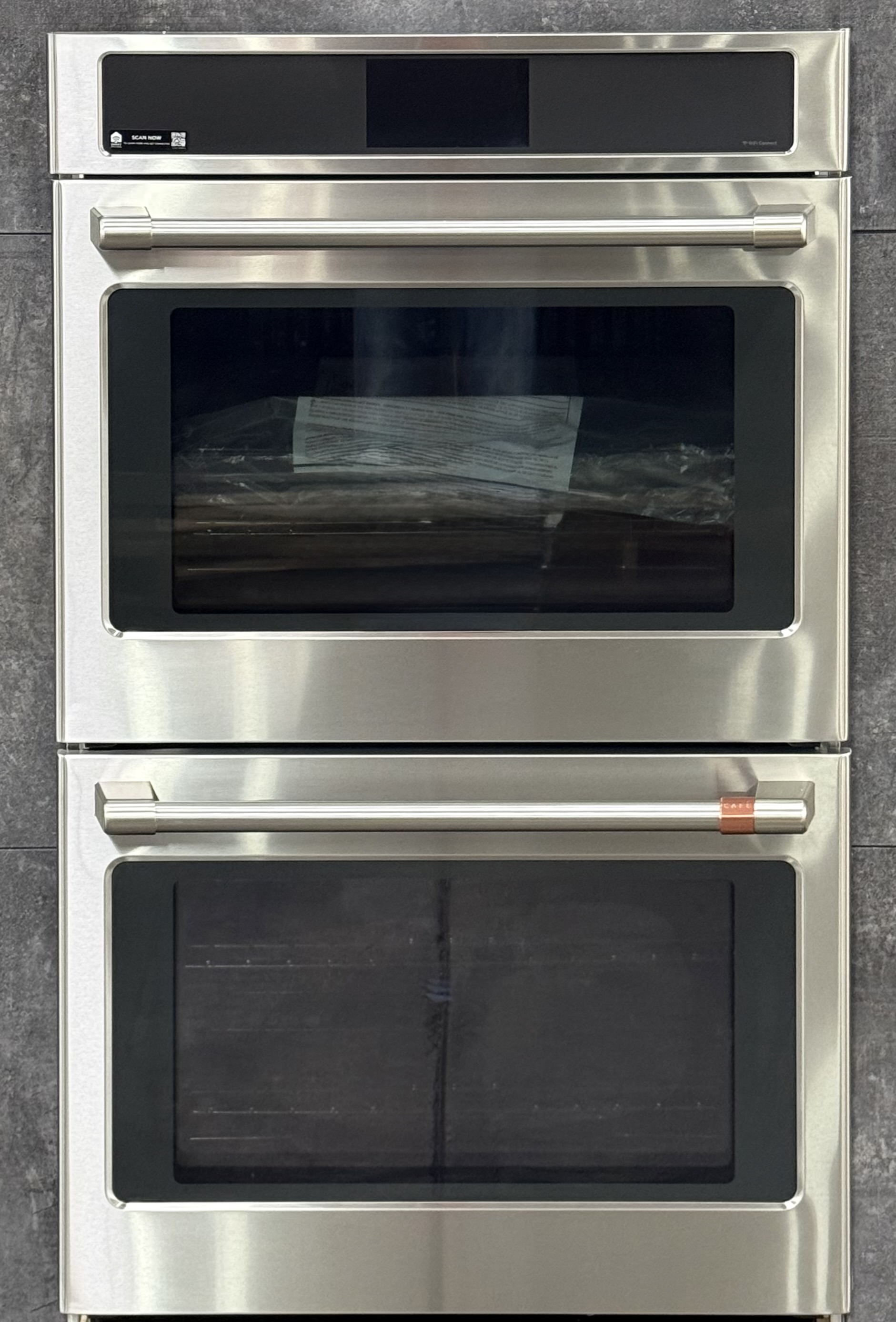 Built-In WiFi, Powered by SmartHQ AppManage all aspects of your kitchen with the help of the SmartHQ(TM) App or your voice assistant (Select features require WiFi Connection) See detailsPersonalized Features + UpgradesUsher in the latest features by downloading cooking upgrades right to your oven, putting Air Fry and more in your repertoirePrecision is the name of your cooking gameConfidently try new recipes and perfectly execute your favorites, using a smart system that automatically tracks progress, modifies temperatures and adjusts cook timesBrighten up life in the kitchenEasily navigate settings using a stunning full color display that adds an unexpected touch of style to your kitchen, including custom screen backgrounds and weather updatesThe perfect bake is now perfectly easyAchieve unrivaled performance with the only system that delivers top-down true convection for consistent results on special occasion favorites like roasts, chicken, turkey and moreNo preheat, no hassleSave time with a variety of precision cooking modes that eliminate the need for preheatingFried taste. Crisp texture. Less oil.Make your favorite “fried” foods healthy, thanks to Air Fry that crisps without using oil for fryingEnjoy convenient temperature control from anywherePreheat while running errands or change oven temperatures while doing yard work with the CAF(EBACK)(TM) Appliances Kitchen appCreate a look that matches your personal styleSelect any combination of premium finishes and hardware options to create a stunning look customized to any owner’s tasteThe oven rack that handles it allEasily remove heavy dishes with a roller rack that is specially designed to glide smoothlyThe perfect fit you’ve always dreamed ofWhen you’re updating your kitchen, attention to detail is a priority. That’s why CAF(EBACK)(TM) wall ovens are guaranteed for an exact fit or CAF(EBACK)(TM) Appliances will pay up to $300 toward modifications.Clean up has never been easierKeep your oven looking like new at all times with a steam clean option for small spills and a self clean cycle for larger messesPrepare foods to perfect donenessGet roasts and meats just right with a temperature probe that lets you monitor progress on the wall oven screen, eliminating the need to open the oven door during cookingMore heat coverage means better resultsEnsure even baking with an element that covers more surface area for better distribution of heatAn even broil is yoursAchieve completely even browning on any size dish with a full-coverage broil element