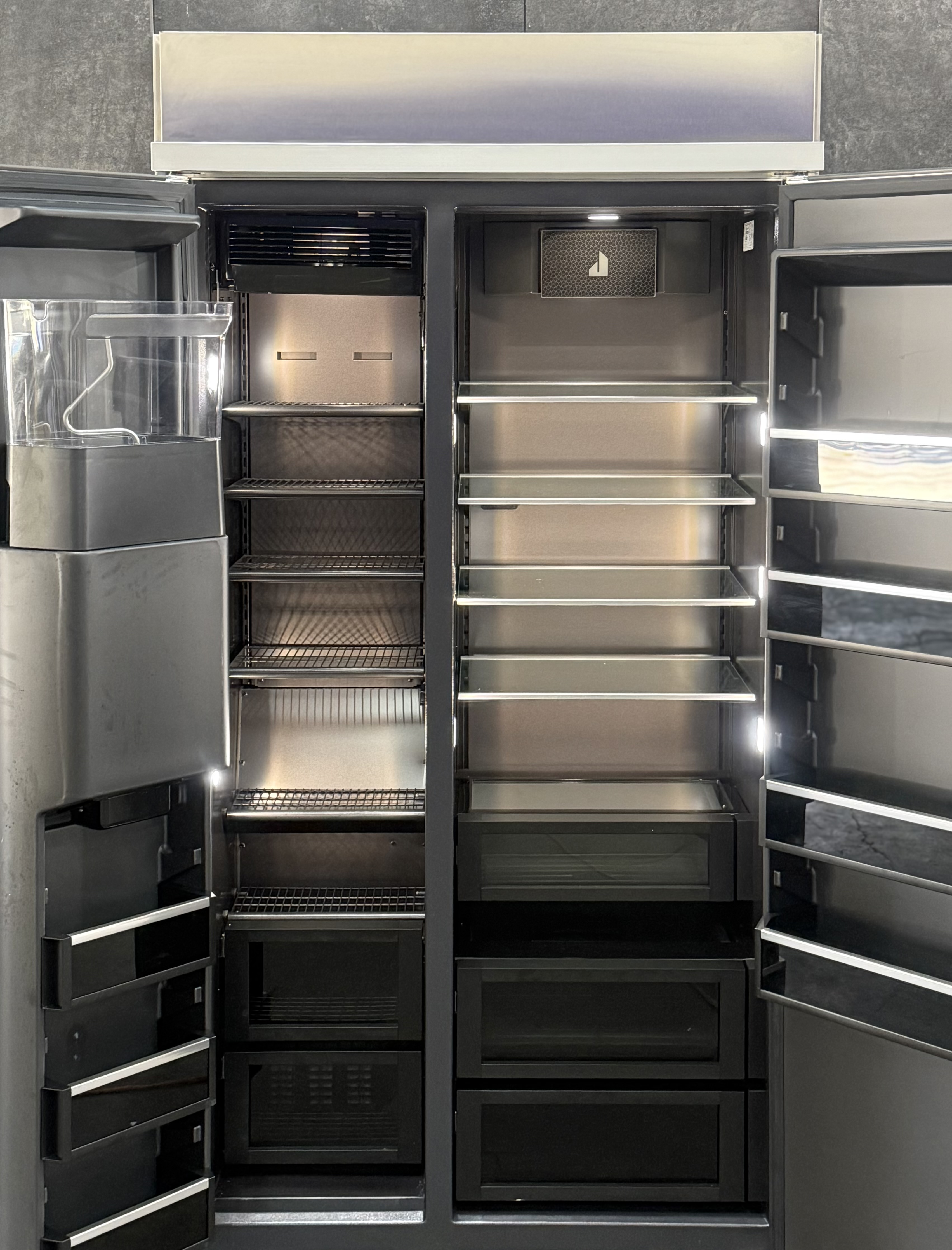 Captivate with the quietest luxury built-in side-by-side refrigerator brand. Features like the industry-exclusive Daring Obsidian Interior, sleek Solid Glass and Metal Drawers and Precision Temperature Management(TM) System come together to offer a distinct aesthetic foundation to your kitchen suite.