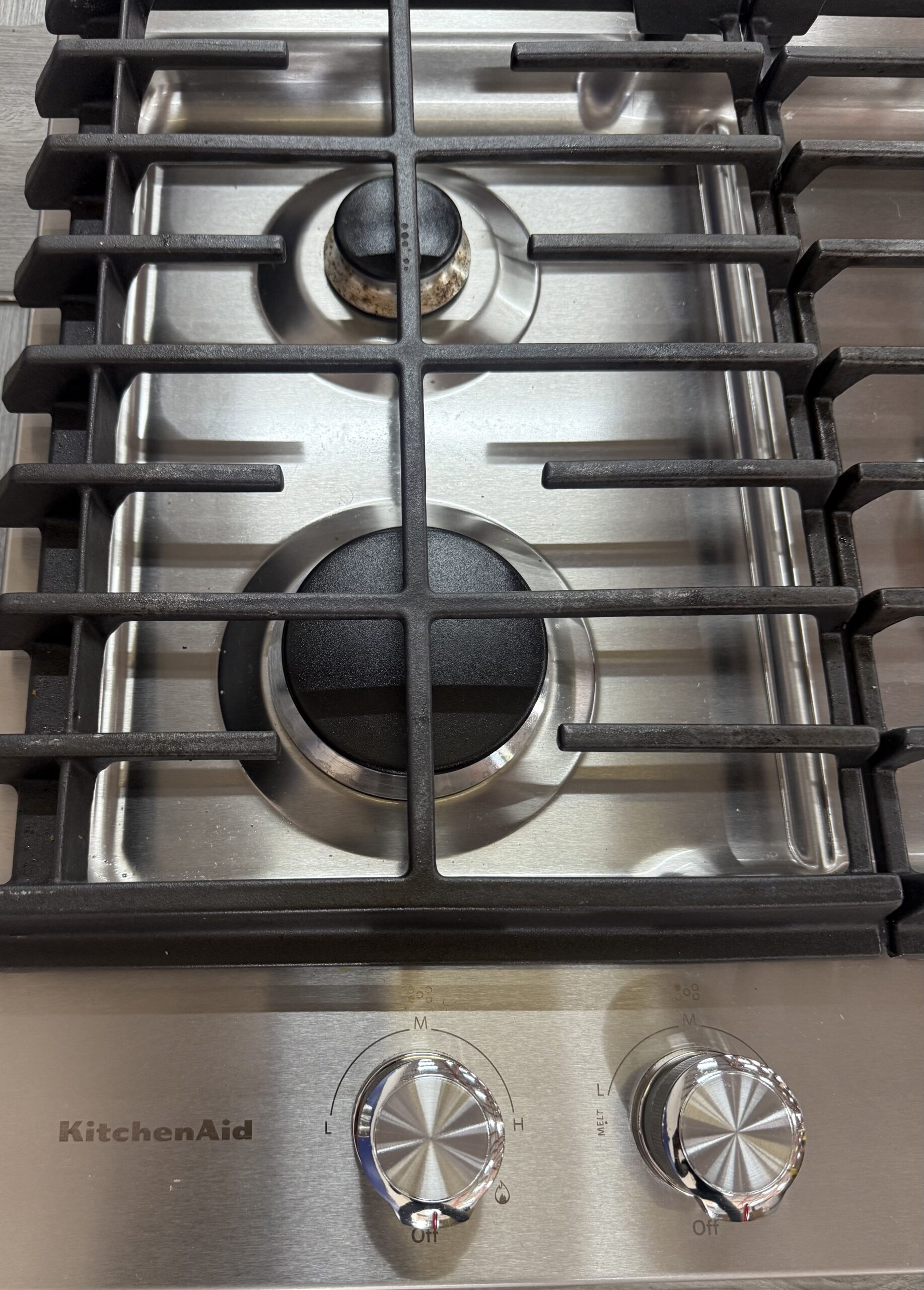 A diffuser plate allows more control of the flame at the lowest setting, for more precise simmering and melting.