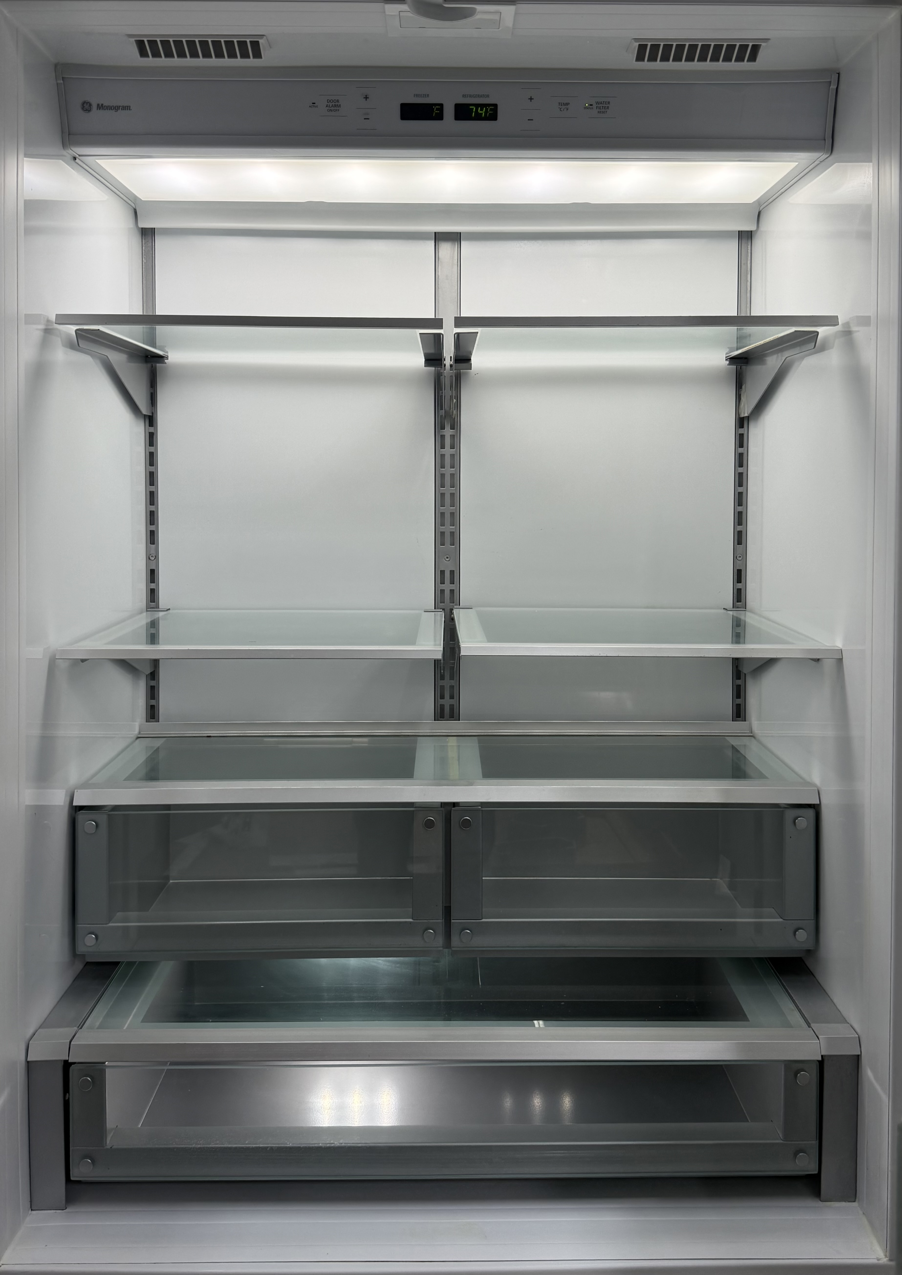 - PRECISION GLASS-FRONT PRODUCE AND DELI DRAWERS: Feature full-extension, soft-close slides.