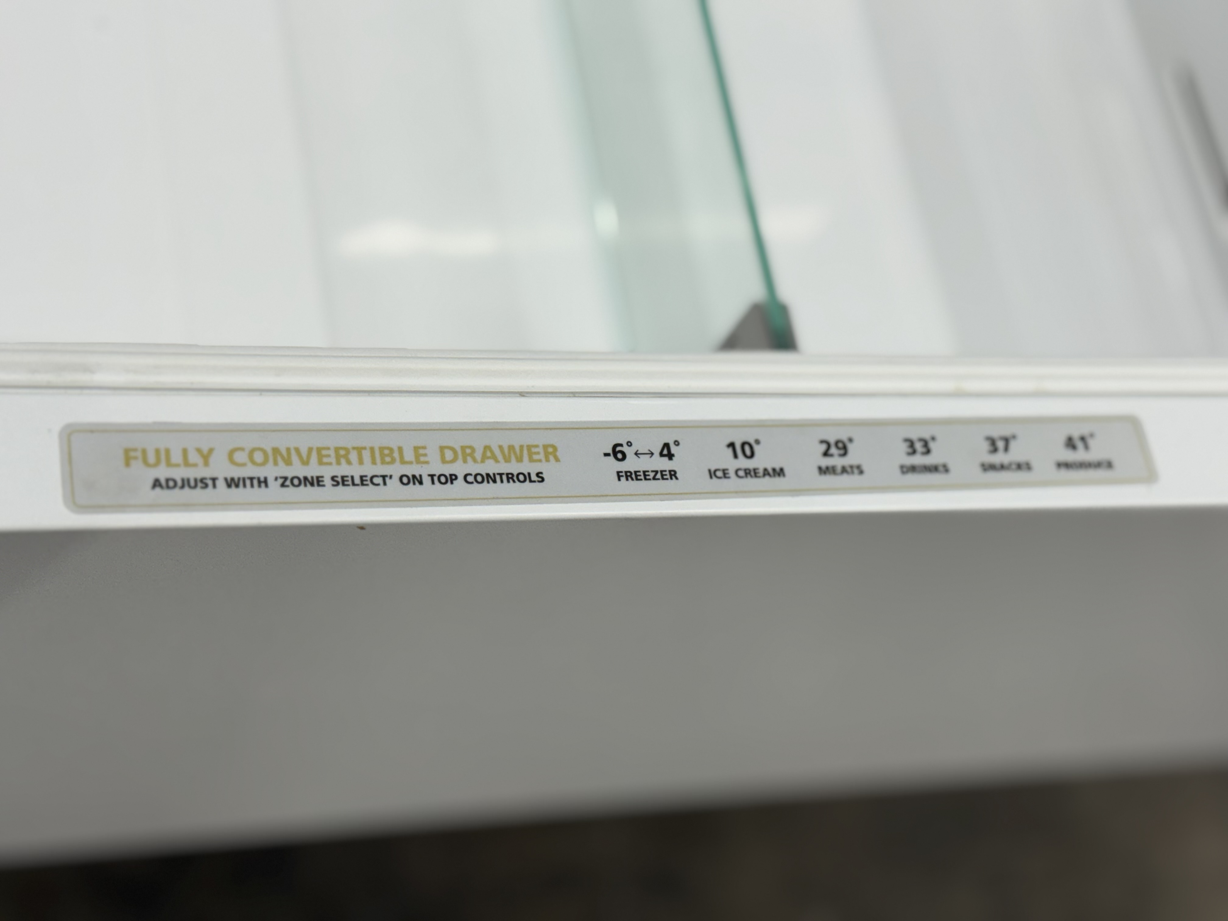 | Middle Drawer | 6 Settings (Hard Freeze [sync w/freezer], Soft Freeze/Gelato, Meats, Cold Beverages, FF/Snack, Produce Yes, Convertible; Plastic Interior |