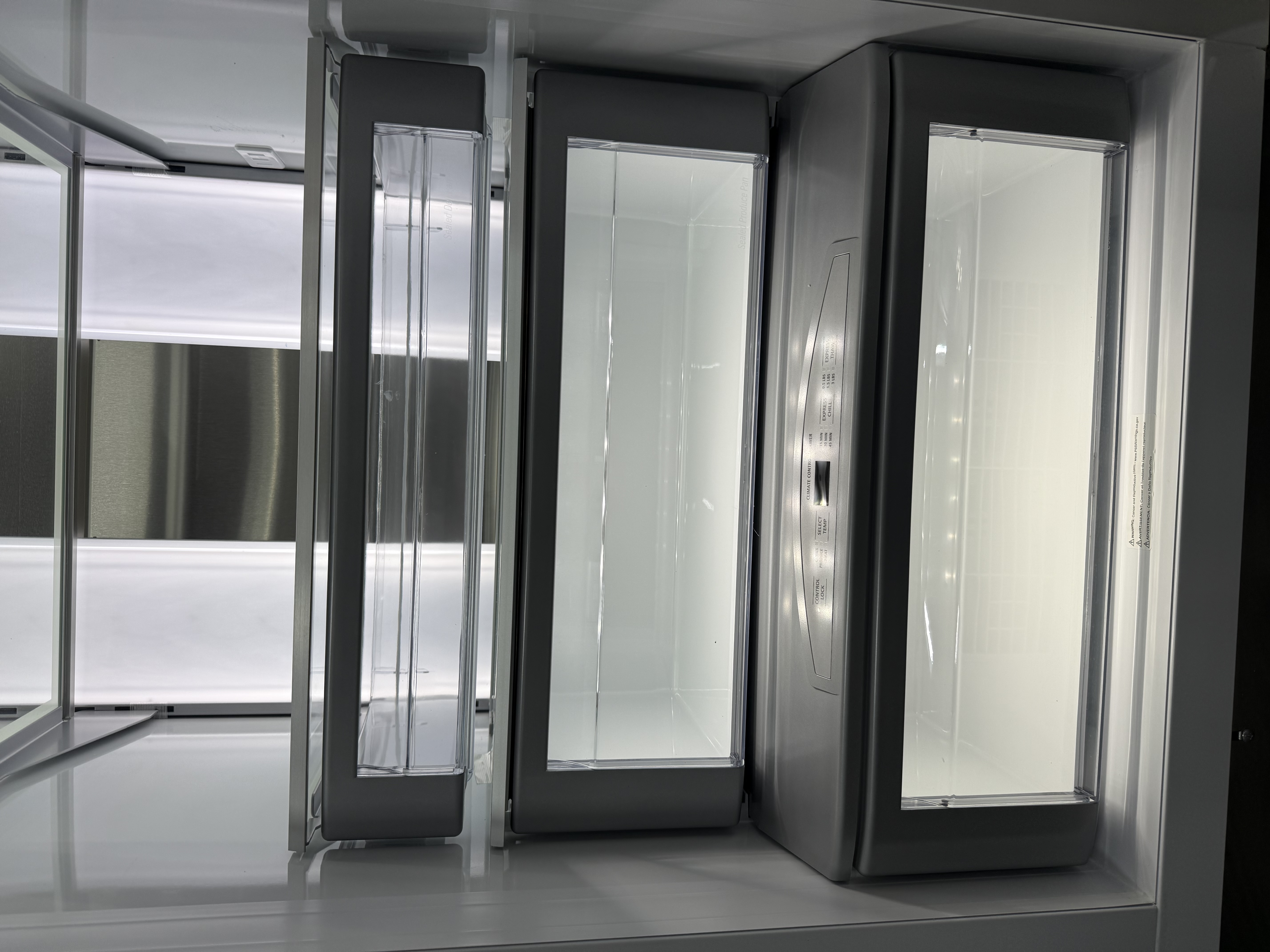 Light columns in the freezer and fresh food compartments extend the full length of the interior and LED lighting located inside the vegetable and climate-control drawers illuminate contents without compromising space