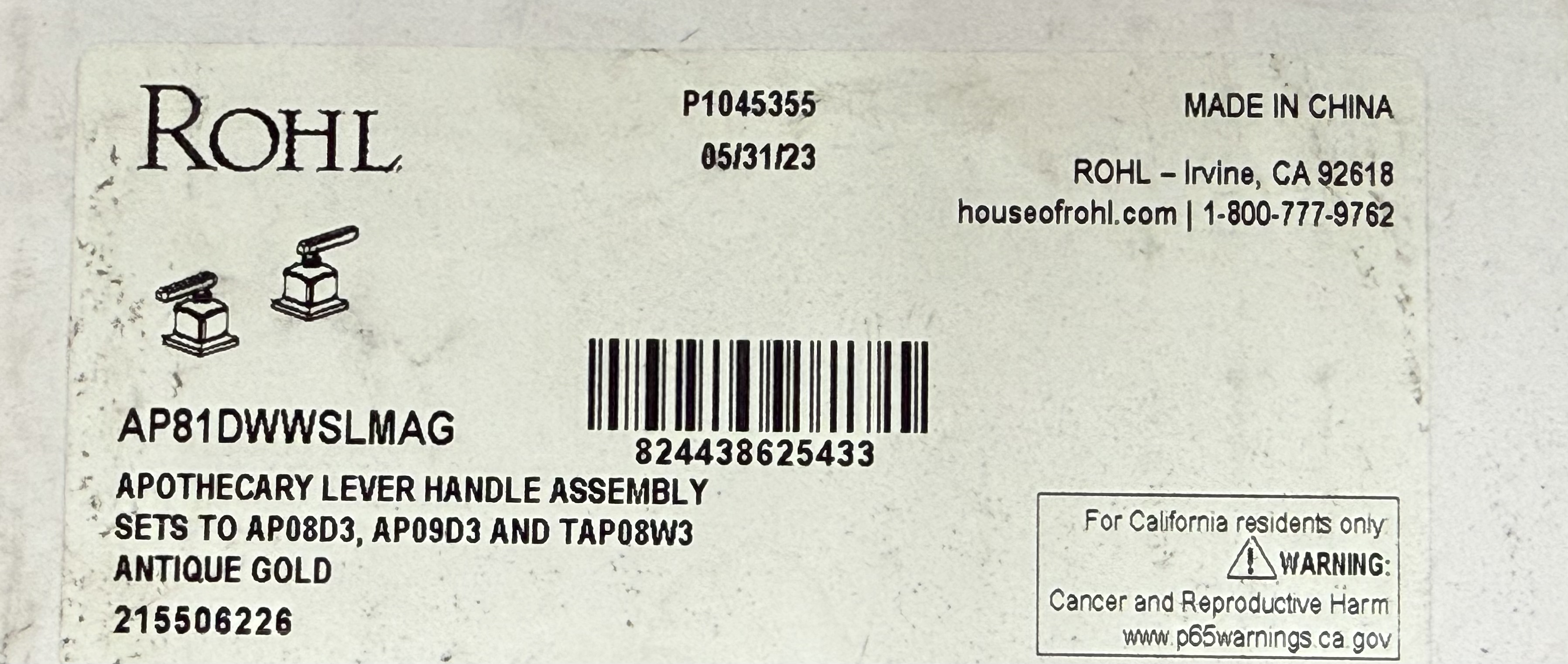 - Material: Likely brass construction (common for Rohl handles), with premium finish for corrosion resistance and high durability.