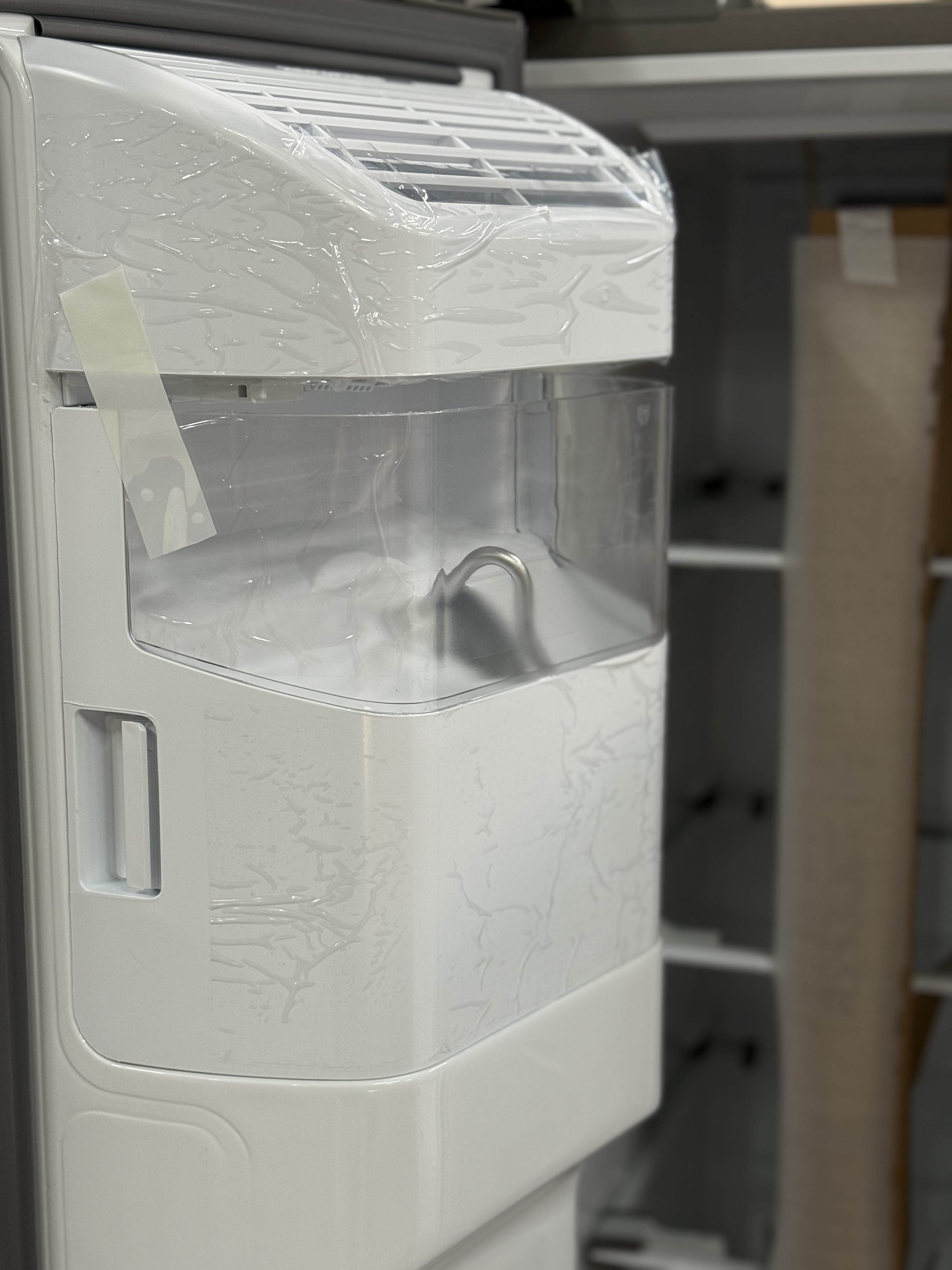 - Integrated dispenser with touch display provides easy access to water, cubed or crushed ice.