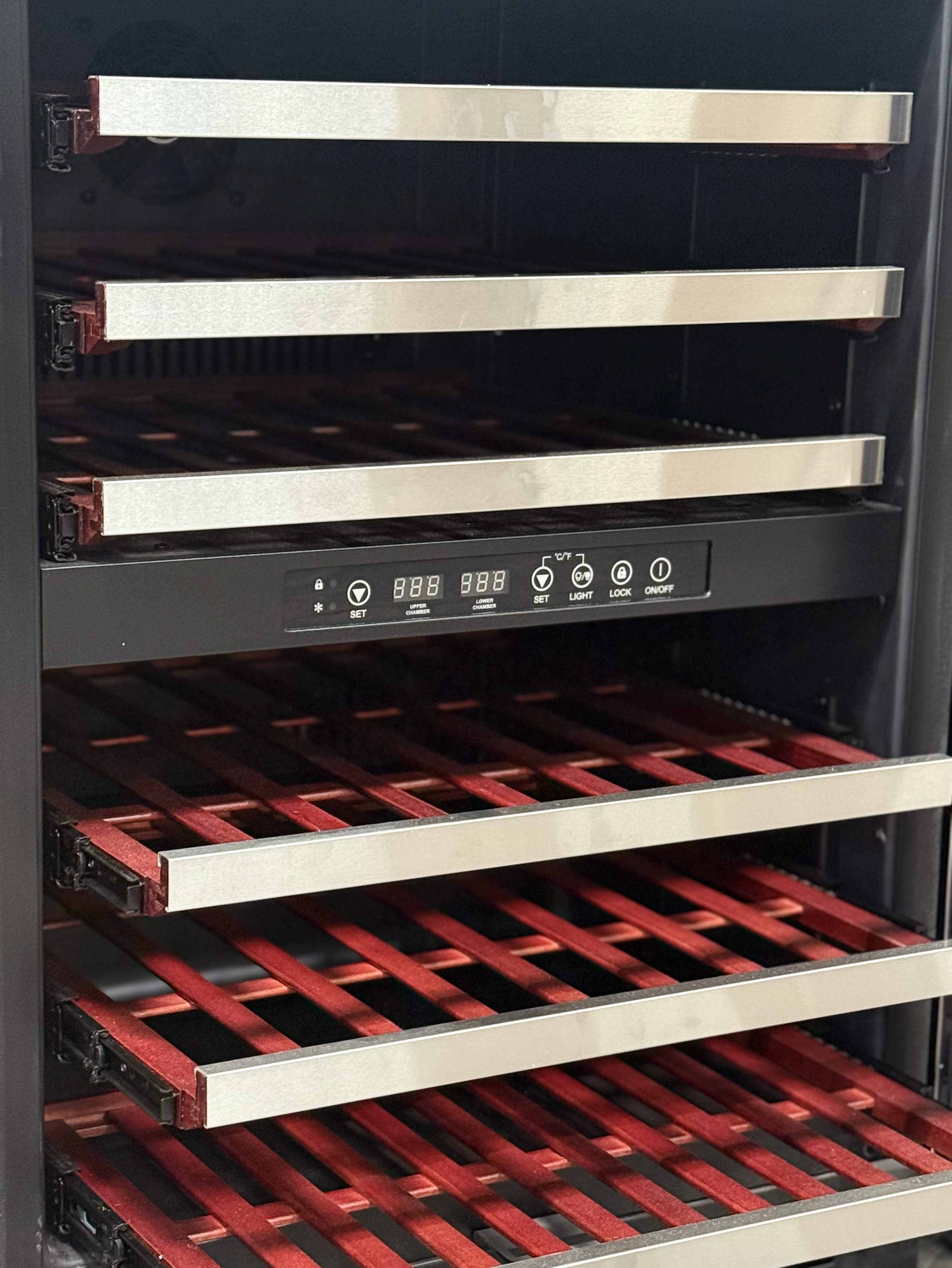 - Interior can store both standard Bordeaux bottles and wider Burgundy type for Pinot Noir and Chardonnay; see your Shelving Guide for details