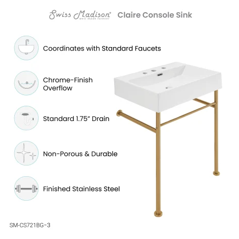 Swiss Madison 24" Claire Rectangular Ceramic Console Bathroom Sink With Overflow And 3 Faucet Holes At 4" Centers SM-CS721BG-3