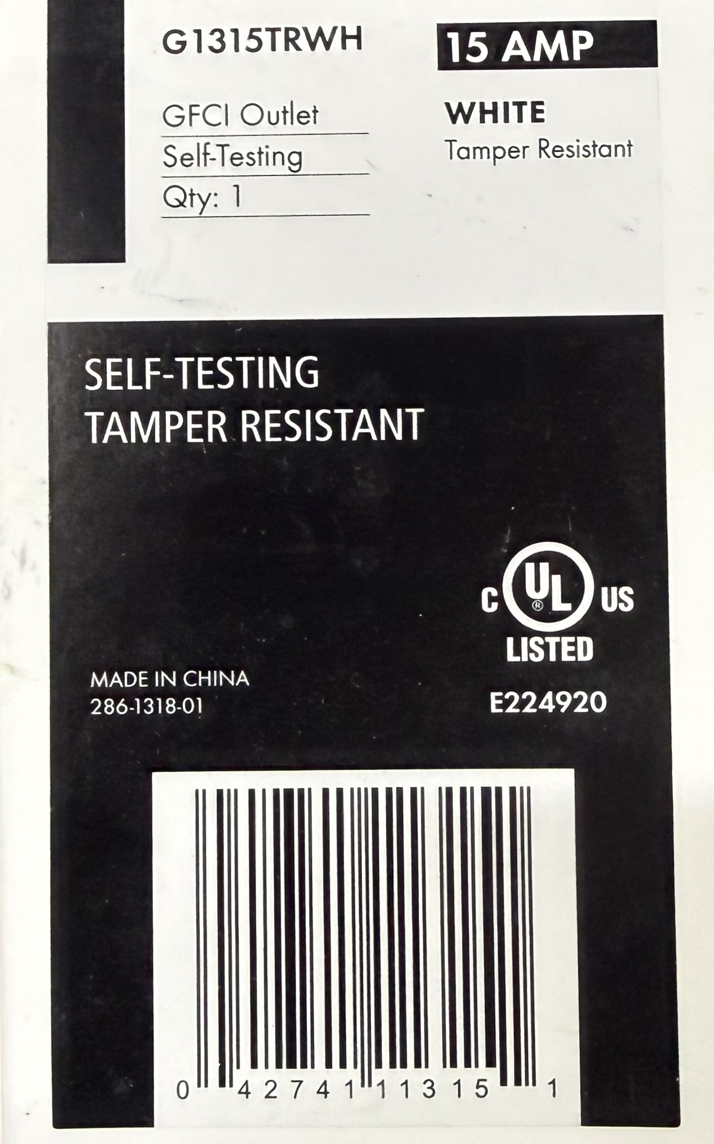 USI ELECTRIC Electric 15a Self Test Gfci Duplex Outlet Receptacle G1315TRWH