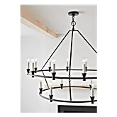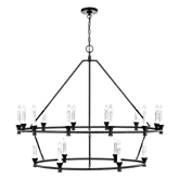 GENERATION LIGHTING Chandelier, Keystone Collection, 1080 W Fixture Wattage, 120 V, 60 W Bulb Wattage, Candelabra Bulb Base, 18 Bulbs, Steel Fixture, Aged Iron Fixture, Screw Collar Chain Mounting, 129-5/8 in Hanging Device Maximum Length, 5-1/2 in Dia x 7/8 in H, 84 in Chain/Stem Length, 49-1/8 in Dia x 39 in H, No Bulb Included