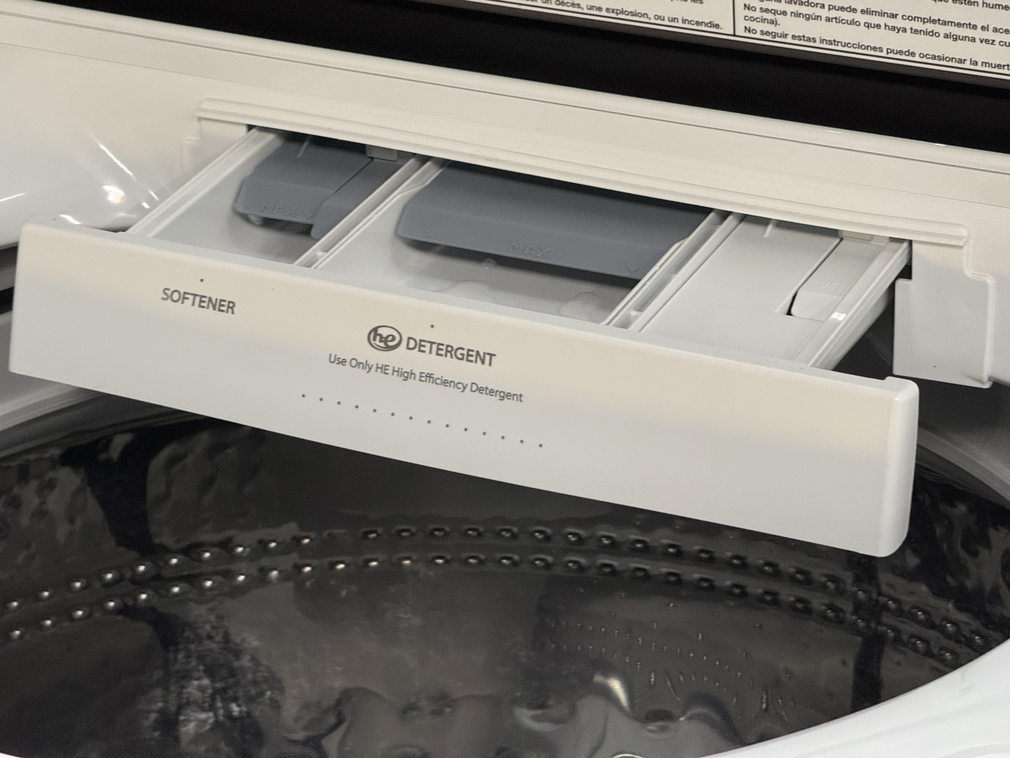 Add detergent and fabric softener to their designated compartments so each gets dispensed at just the right time during the cycle.