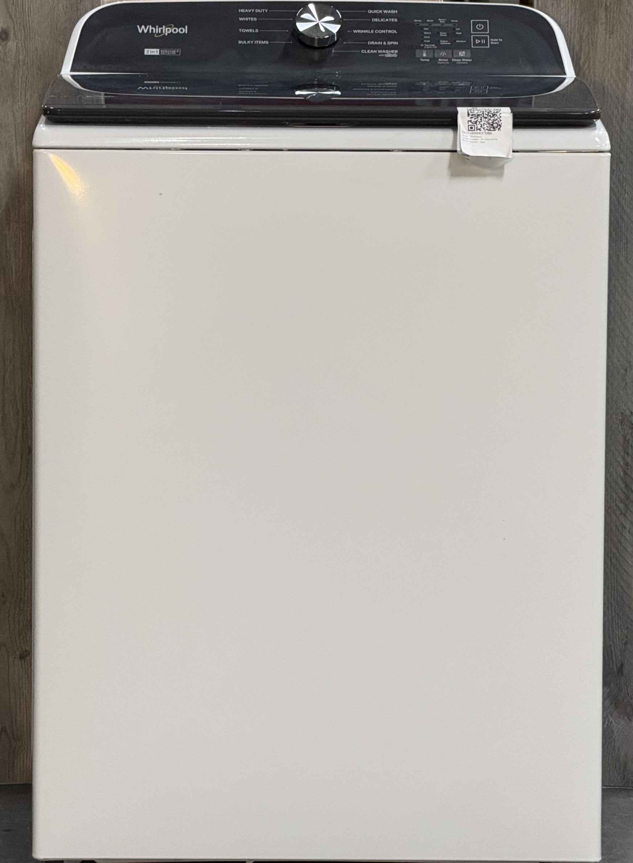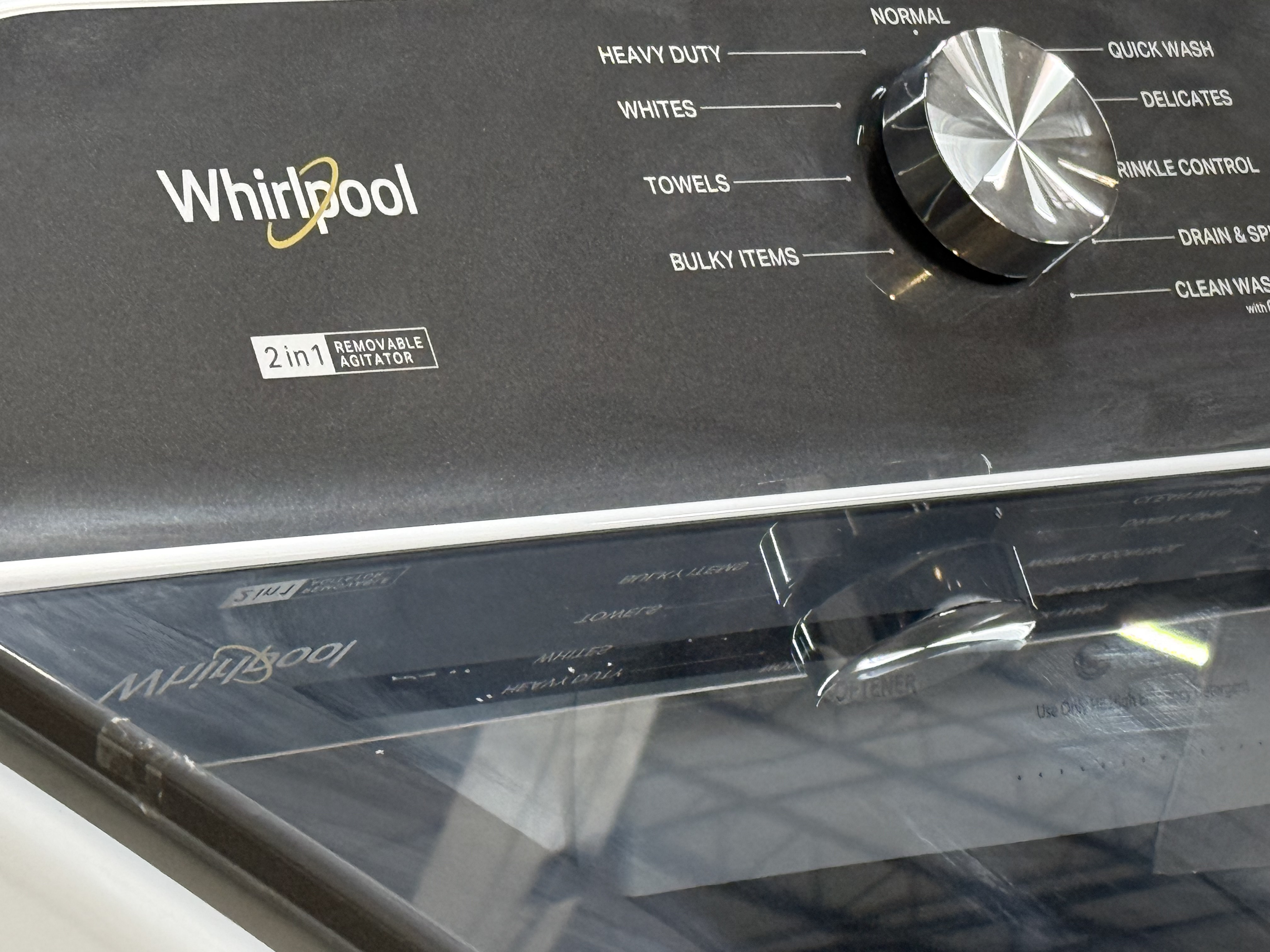 This ENERGY STAR(R) Certified 6.0-6.1 cu. ft. Whirlpool(R) Top Load Washer gives you two ways to wash thanks to the 2 in 1 Removable Agitator. Wash the way you want by simply removing the agitator to fit bulky items, or keeping it in to help break down loose soils. Use the Deep Water Wash Option to add more water* when you need it and easily check on your laundry while it’s washing with the EasyView(TM) Full-Width Slow-Close Glass Lid. The Smooth Spiral Stainless Steel Wash Basket helps prevent fabrics from snagging, so clothes come out looking their best. *Bulky Items Cycle only available with deepest water level.